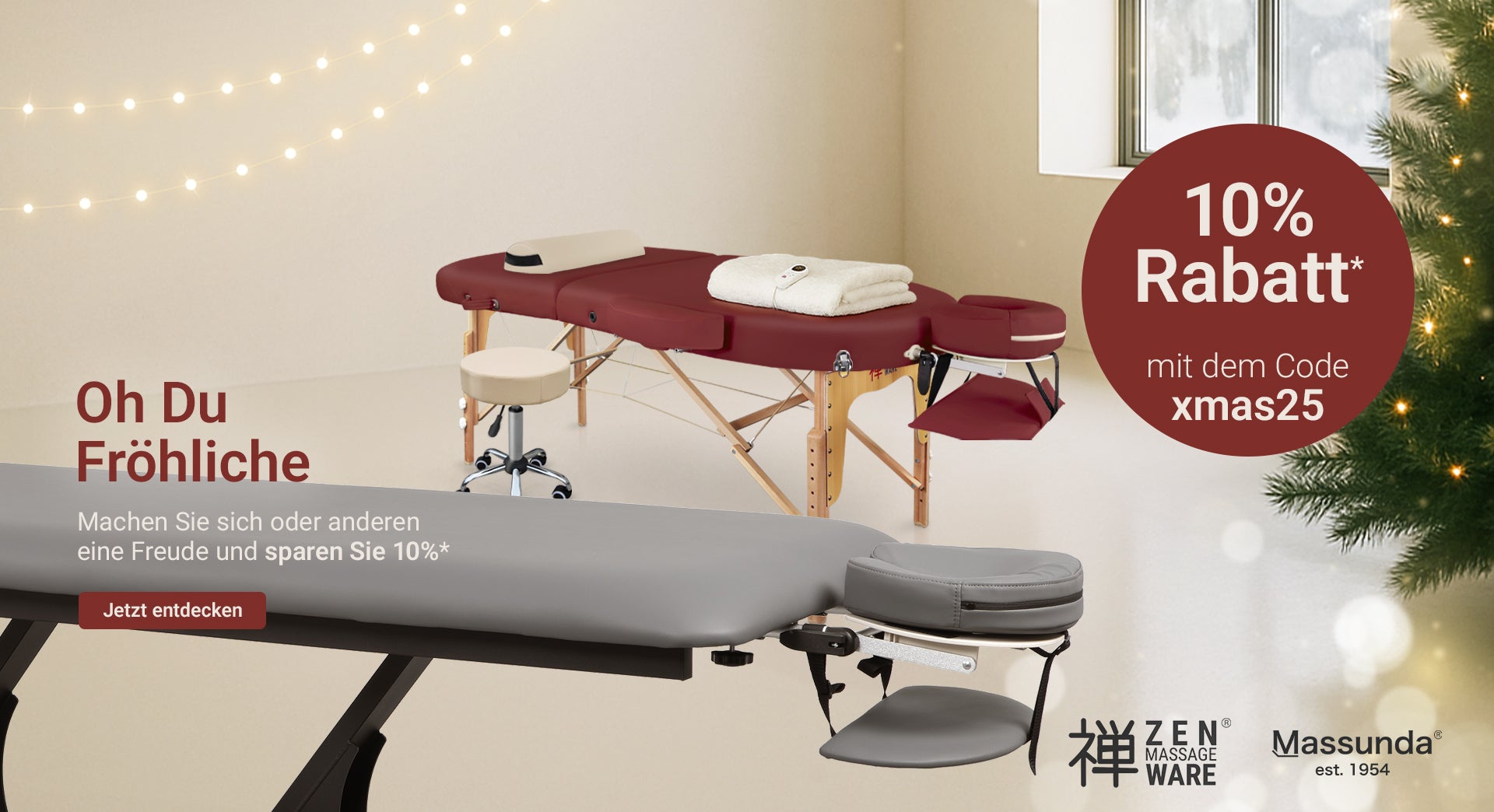 Die Aktion ist gültig bis 28.12.2025 und gilt für ausgewählte Produkte der Marken ZEN Massage Ware® und Massunda®. Der Gutscheincode kann nicht mit anderen Rabattaktionen kombiniert werden.