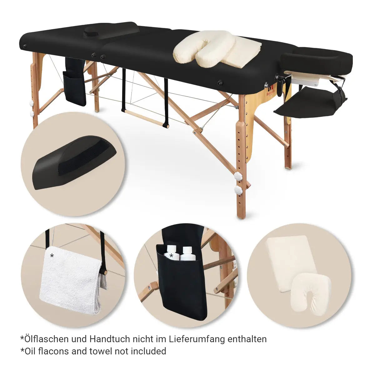 - Full-Service-Zubehör: Alles, was Sie für eine professionelle Behandlung benötigen, ist bereits inklusive:Verstellbare Kopfstütze & Armschlaufe, Integrierter Handtuch- und Ölflaschenhalter, Ergonomische Kissen für Nacken und Knie